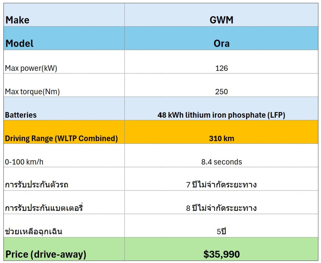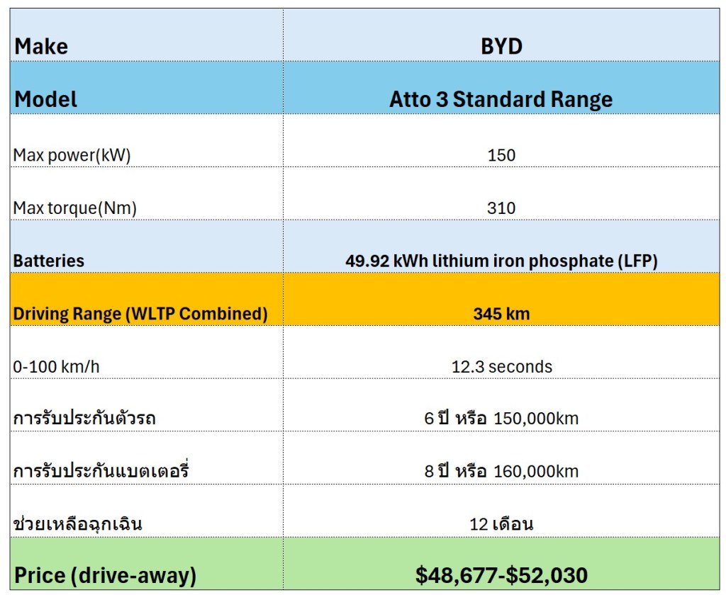 เมื่อเราลองเอา 5 คันมาจับเทียบกันในตารางเดียวจะเป็นตามนี้นะครับ EV ในออสเตรเลีย กระแสยังไม่แรงเท่าเมืองไทยของเราบอกเลย